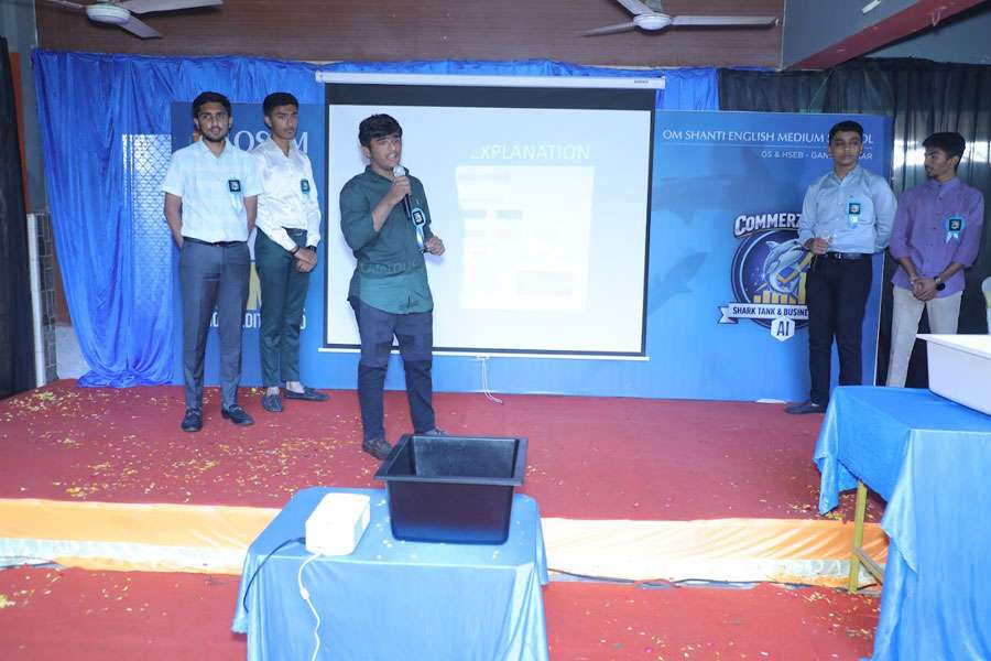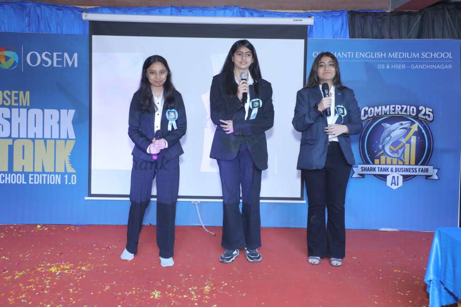Om Shanti English Medium (OSEM) GSEB School marked a milestone in experiential learning by successfully organizing “Shark Tank 1.0”, the first-ever entrepreneurial initiative of its kind in the Morbi district, followed by an inspiring Commerce Fest Business Fair.